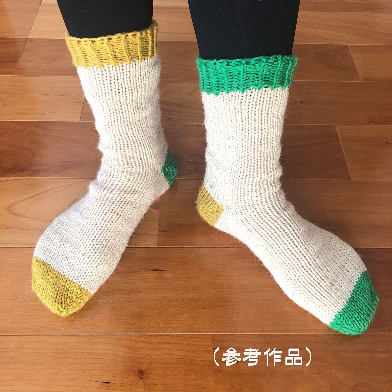 針と糸も、一般的な手編み靴下よりも太く、扱いやすいサイズを使います。目も見やすく、編みやすいので、靴下初心者さんが「つま先から編む靴下」の構造を理解するのにもおすすめします。
